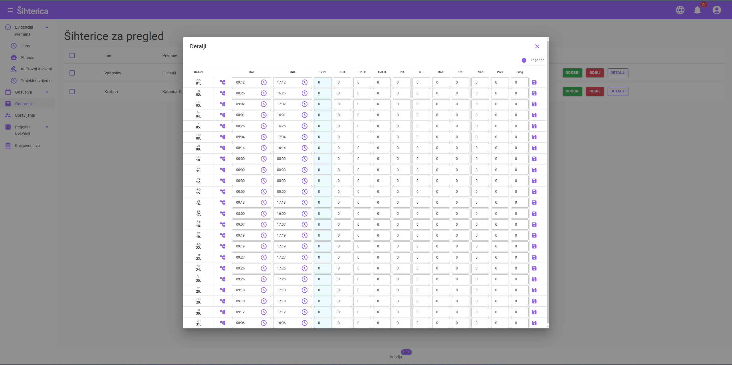 Pronađite zaposlenike čije evidencije želite pregledati pomoću pretrage po imenu. Jednostavno upišite ime i brzo pristupite njihovim podacima.